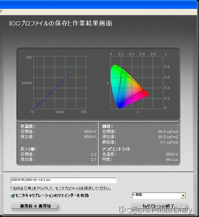 当然のように・・・ばっちりの色見と特性。これでsafari(safariは色管理できるブラウザーだそうです)でネットサーフィンして見えた色は正しい色見で表示されているはずです。